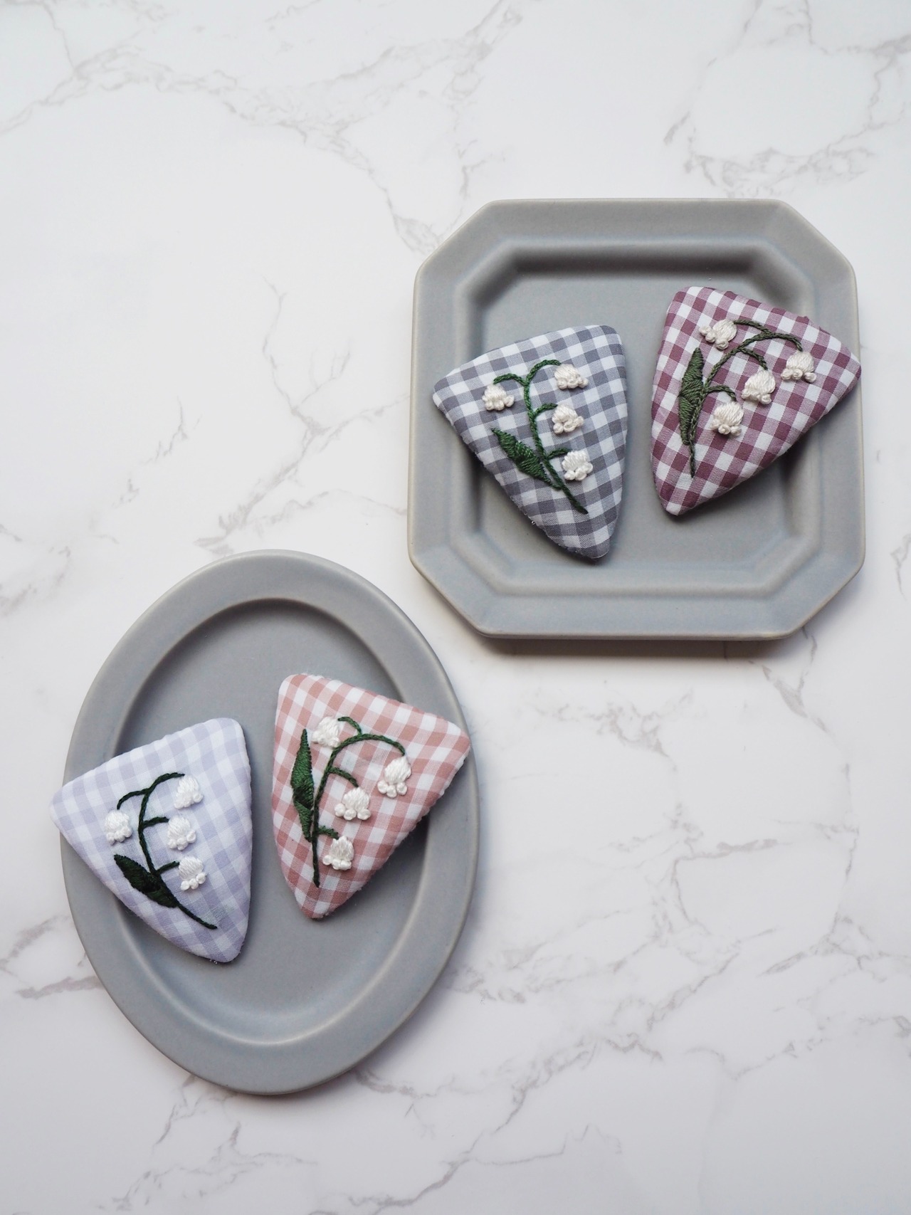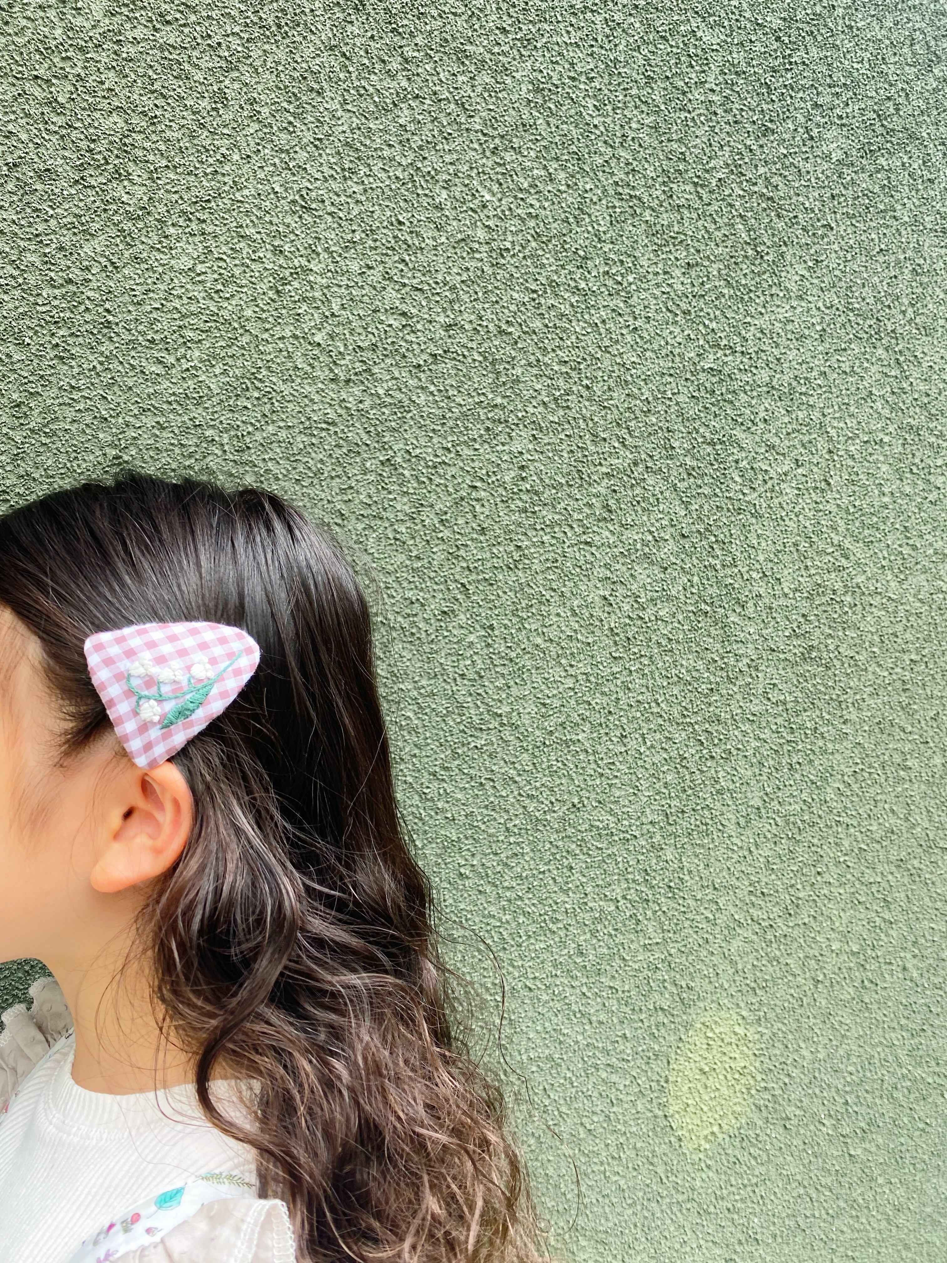 すずらんの刺繍をしたパッチンピンです♡
